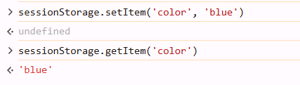 5.uus Kirjuta käsk sessionStorage.getItem(‘color’) ning näed, et väljastatakse sessionStorage’ blue.