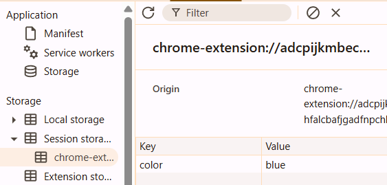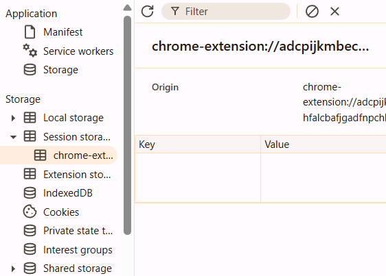 6.Kontrollimiseks peate minema jaotisse Application> Session Storage. Saate vaadata meie sisestatud teavet.